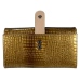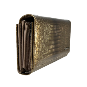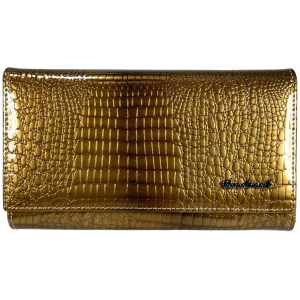Гаманець шкіряний, золотий, з кнопковою застібкою, 5 відділень для купюр