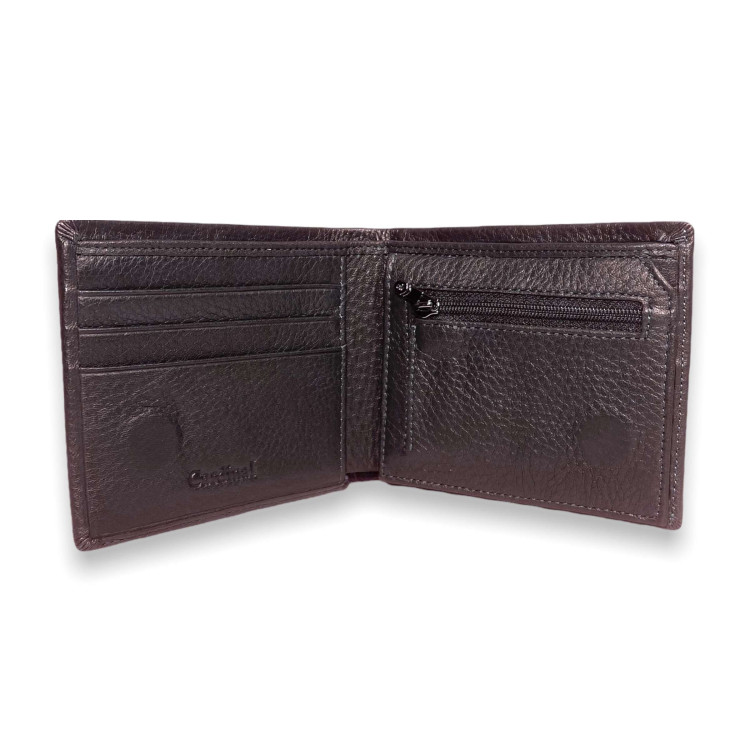 Гаманець чоловічий Cardinal 230 застібка-магніт три відділи для купюр одне на блискавці 8 відділів для карток одне прозоре відділення розмір: 11*10*2.5 см коричневий