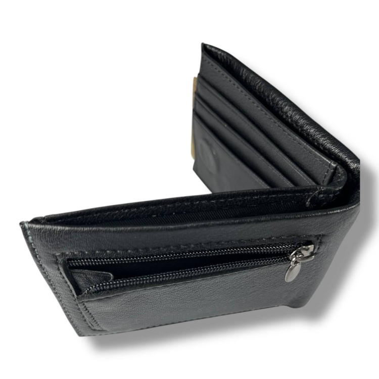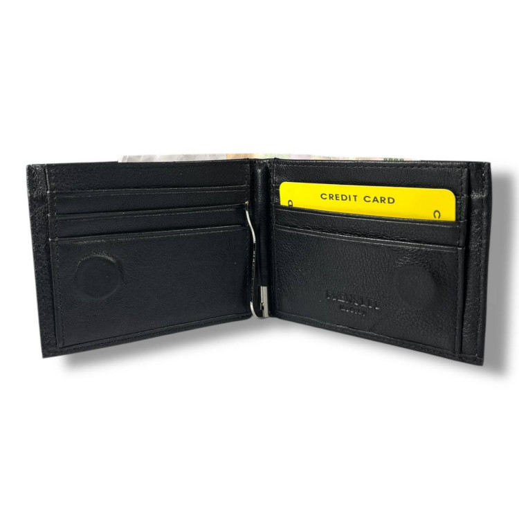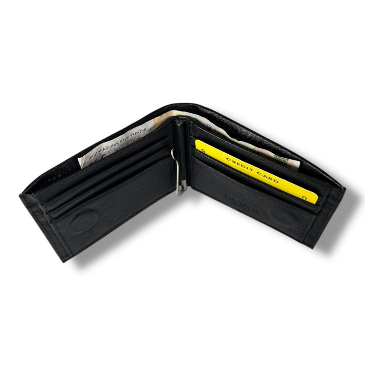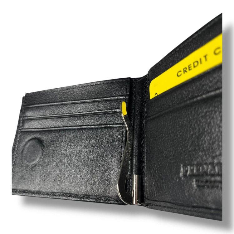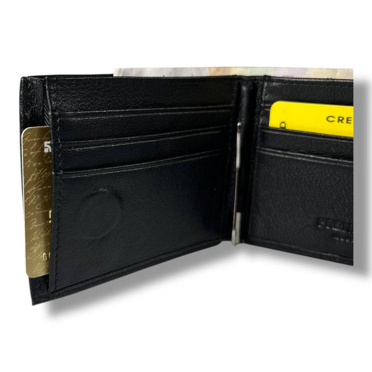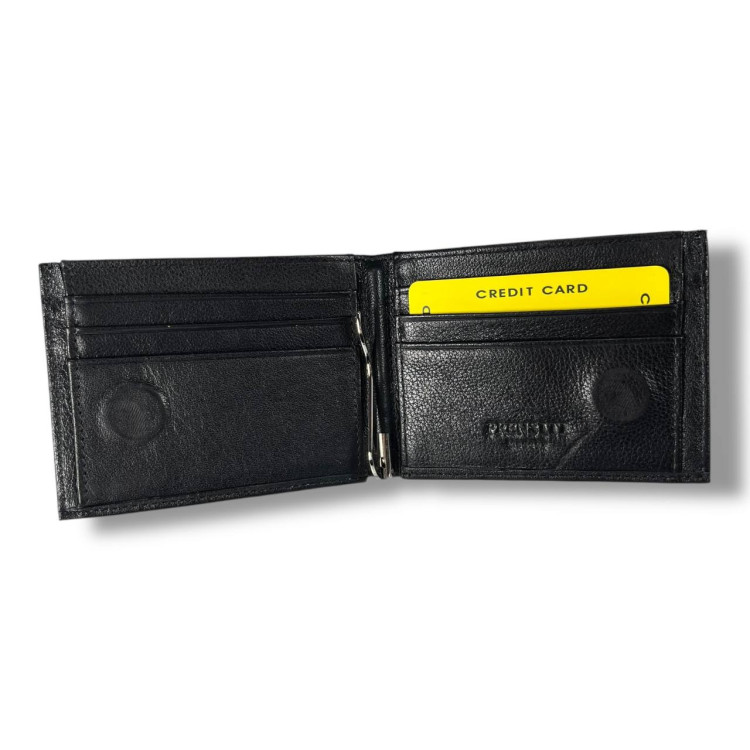 Гаманець чоловічий Prensiti із затискачем для купюр, шкіра, 1 відділ для купюр, 1 відділ на замку, 8 для карток, монетниця на замку ззовні, застібка-магніт, розмір: 11*9*2.5 см чорний.