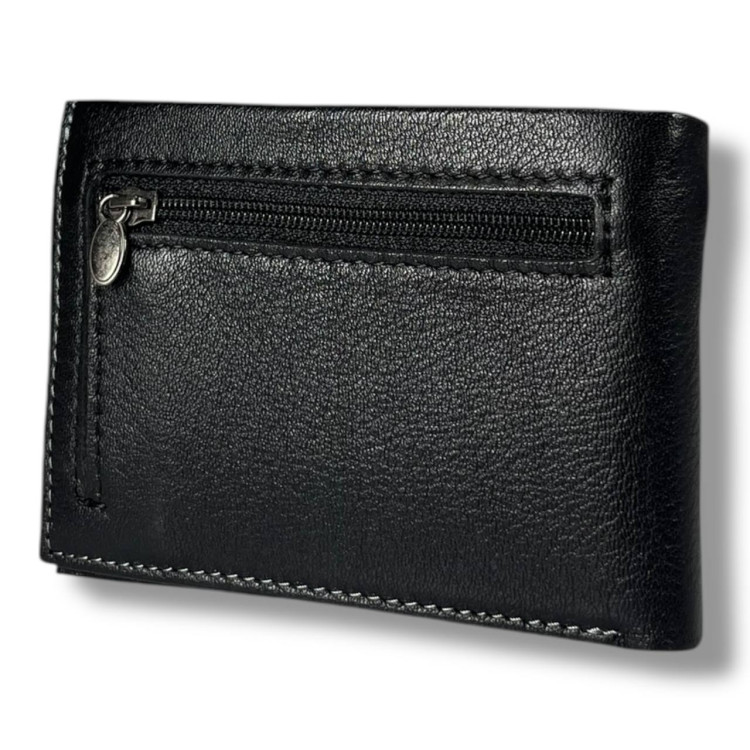 Монетниця на замку, розташована ззовні, доповнює функціонал гаманця і забезпечує зручність у користуванні. Застібка-магніт доповнює вигляд і функціональність цього гаманця.