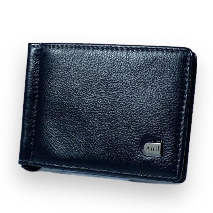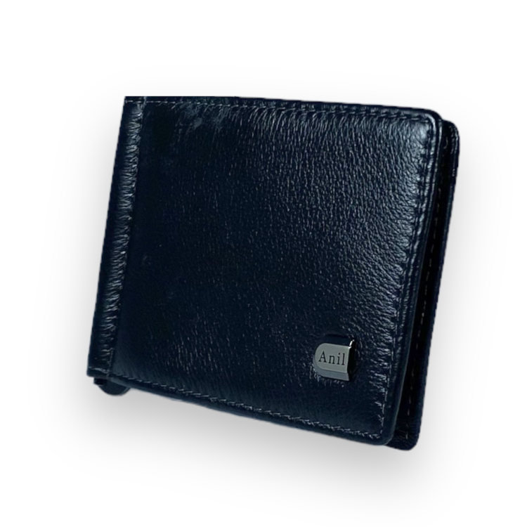 Гаманець-затискач Anil натуральна шкіра 1 осередок для картки відділ для монет розмір: 11 5*8*1 см чорний