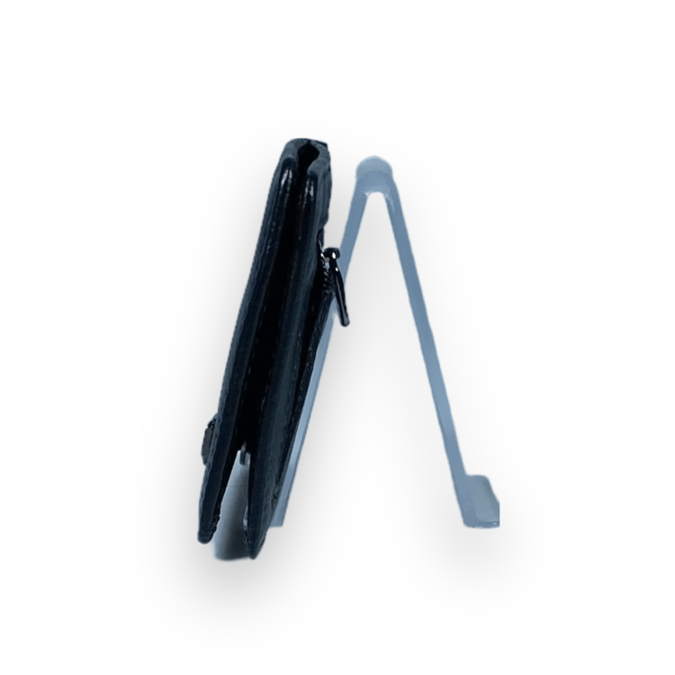 Гаманець-затискач для купюр крім самого металевого затискача має один осередок для пластикової картки та зовнішній відділ для монет. Гаманець компактний та зручний виготовлений з натуральної шкіри. Легко розміщується в кишені одягу. Зачиняється на магніт