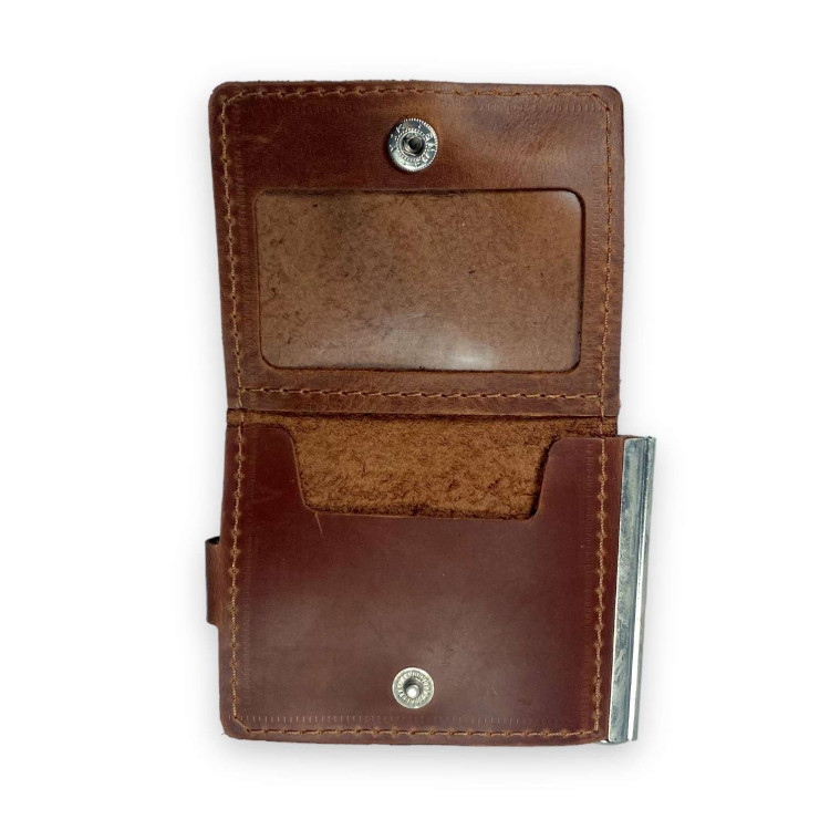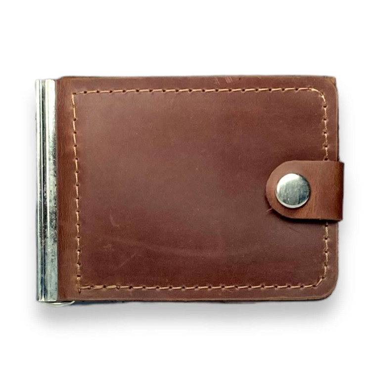Гаманець затискач для купюр BagWay, екошкіра, ручна робота, відділення для купюр з затискачем, чотири відділення для карток, одне прозоре відділення, розмір: 10*8*1 см, світло-коричневий.