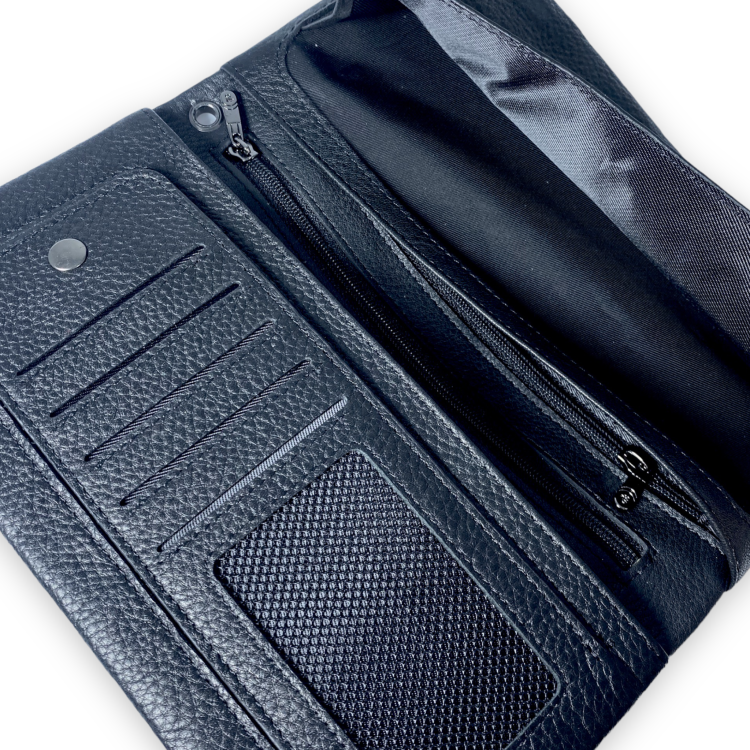 Гаманець для чоловіків із якісної натуральної шкіри. Модель із фіксацією на магніт. Внутрішній розворот відкриває доступ до основних відділень. Передбачено 3 відділення для купюр 16 осередків для карток прозоре відділення два внутрішніх відділення на блискавках та зовнішнє відділення для монет чи інших цінних дрібниць. В комплекті ремінець на зап"ястя. Якісний гаманець - це довговічність міцність стійкість до зносу.