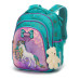 Ранец для девочки младших классов 5022 жесткий каркас, два отделения, фронтальный карман с рисунком, боковые карманы на липучках,SkyName размер:30*16*36 см, бирюзовый