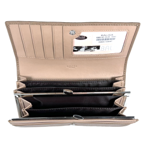 Функциональность и безопасность: Кошелек имеет скрытые карманы для хранения дополнительных вещей, монетницу с металлической застежкой и прозрачные отделения. Эти особенности обеспечивают удобство и легкий доступ к вашим вещам.