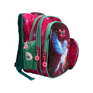 Стильный дизайн и привлекательный принт: Рюкзак доступен в розовом цвете с изысканным принтом "пегас", что придает ему оригинальность и стиль, а также подчеркивает женственность вашей дочери.