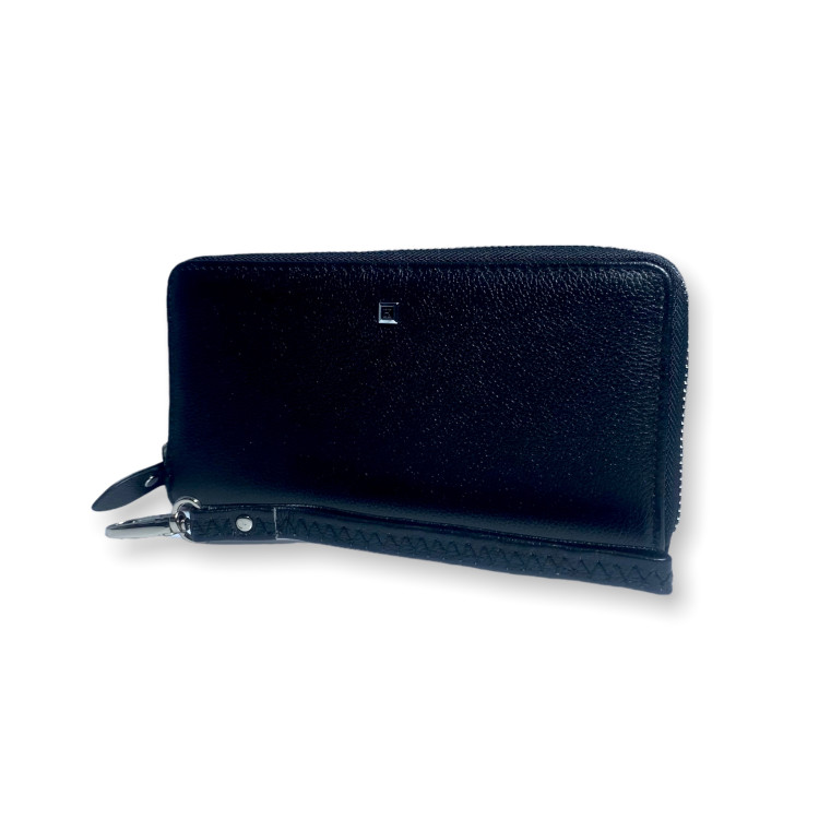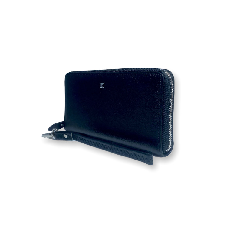 Портмоне клатч кошелек мужской из натуральной кожи H138 одно основное отделение на молнии пять отделов для купюр 8 отделений для карточек размер: 20*10*2 см черный
