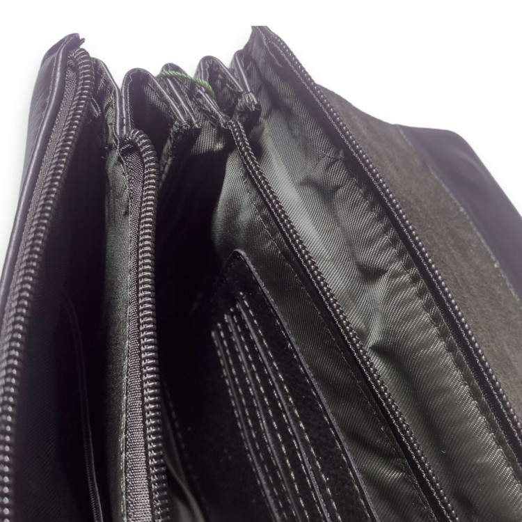 Мужской клатч портмоне – презентабельный аксессуар подчеркивающий статус его владельца. Кроме того он имеет отличную функциональность со многочисленными отделами и карманами. Три отдела с двумя внутренними карманами один открытый другой на молнии. Все три отдела под общей молнией и зафиксированы кожаным клапаном на магните. Изготовлен из экокожи клапан из натуральной кожи. В комплекте ремешок на запястье и плечевой ремень.