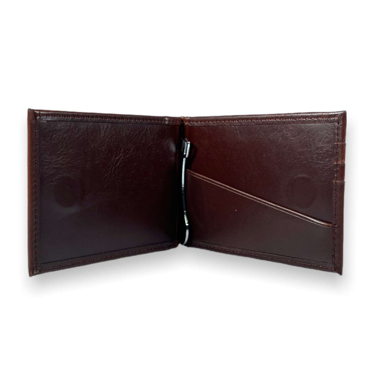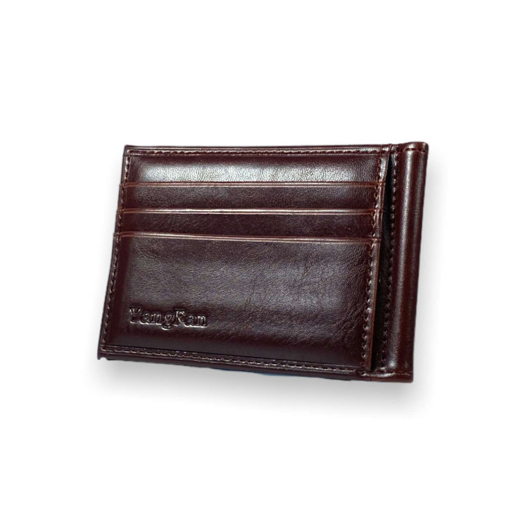 Зажим кошелек для купюр из кожзаменителя отделение для банковских карт размер: 11*8*1 см коричневый