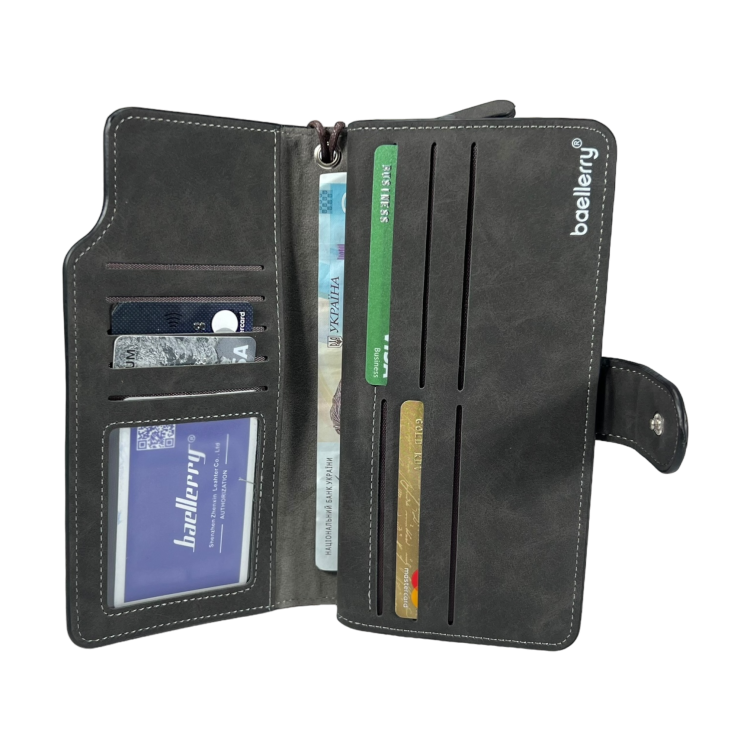 Изготовлен из высококачественной экокожи, портмоне отличается прочностью и долговечностью. Застежка на змейке и кнопке обеспечивает надежное хранение вещей.