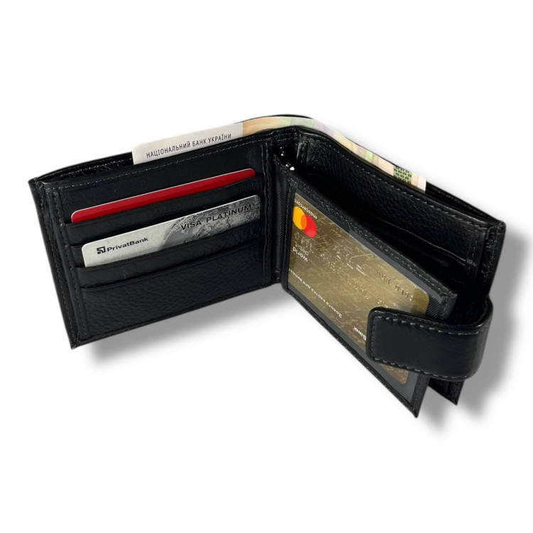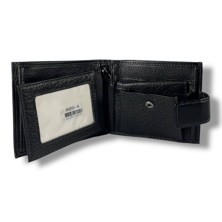 Компактный, стильный и удобный – этот мужской кошелек идеально подходит для тех, кто ценит комфорт и качество. Изготовлен из натуральной кожи, имеет классический черный цвет, надежное магнитное закрытие и продуманную внутреннюю организацию.