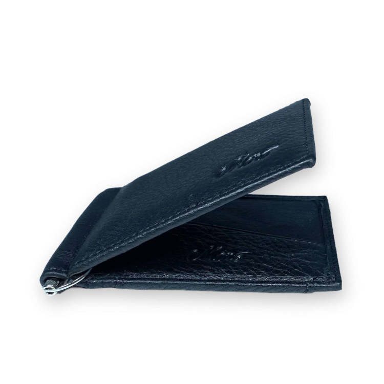 Мужской кошелек Moro с зажимом натуральная кожа 1 отделение для купюр размер: 11*8*2 см черный