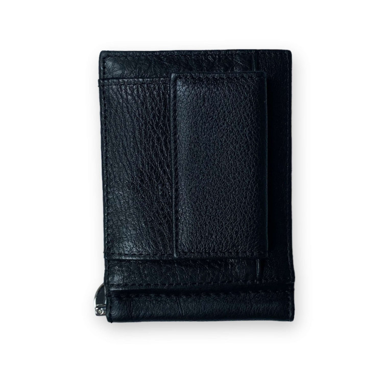 Модель кошелька имеет дополнительную функциональность, а именно металлический зажим для купюр. Предусмотрен металлический зажим для купюр и одно отделение для пластиковой карты. Есть наружное отделение монет на кнопке. Изготовлен из натуральной кожи качественно и аккуратно сшит. Закрывается на магнит