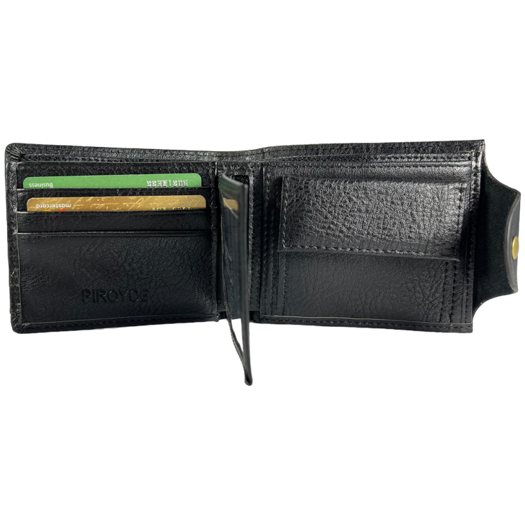 Мужской кошелек черного цвета на кнопочной застежке