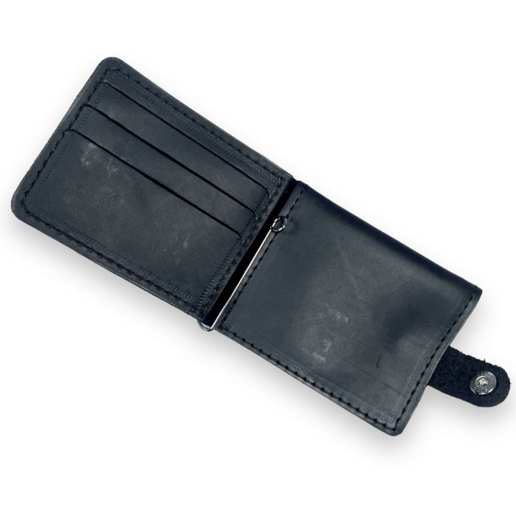 Кошелек зажим для купюр BagWay, экокожа, ручная работа, отделение для купюр, четыре отделения для карточек, одно прозрачное отделение, размер: 10*8*1 см, черный.