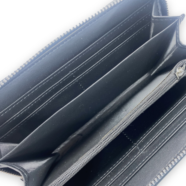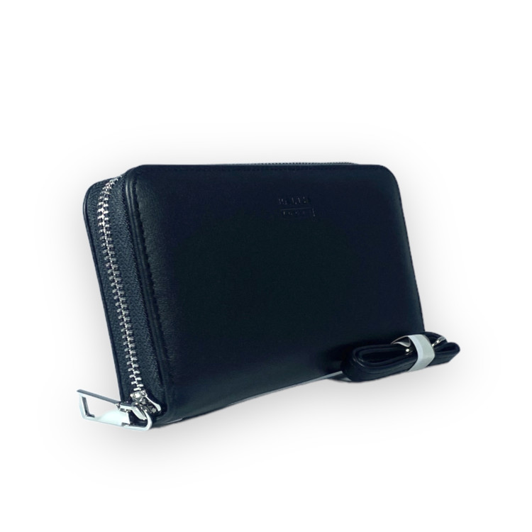 Кошелек имеет пять отделов для купюр, одно внутреннее на молнии. Для пластиковых карт предусмотрено восемь ячеек. Закрывается кошелек на молнию. В комплект входит съемный ремешок на запястье. Изготовлен из качественной экокожи. Имеет хороший презентабельный вид.