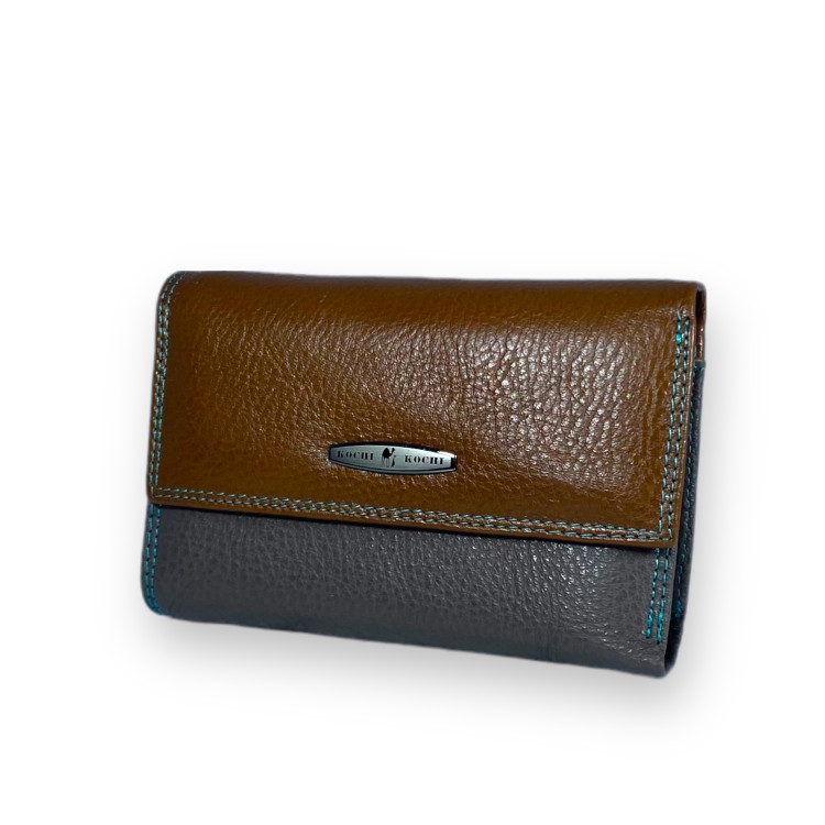 Хороший качественный кошелек – любимый женский аксессуар и является частью женского образа. Одна из таких моделей кошелька Koсhi должна обязательно понравиться женщине. В нем предусмотрено два отделения для купюр шесть ячеек для пластиковых карт одно из которых прозрачное. Имеет внутренний отдел на молнии для монет. Застёгивается на кнопку. Изготовлен из натуральной кожи в сочетании разных цветов частей кошелька что делает его оригинальным и неповторимым.