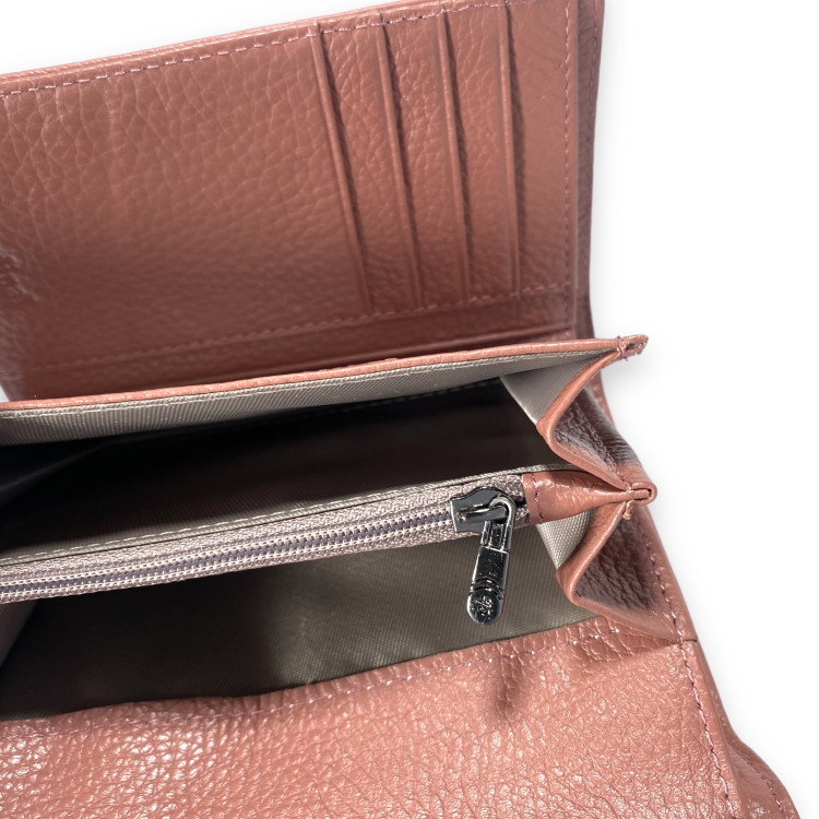 Кошелек женский натуральная кожа 2 отдела для купюр 10 для карточек размер: 14*10*3.5 см розовый