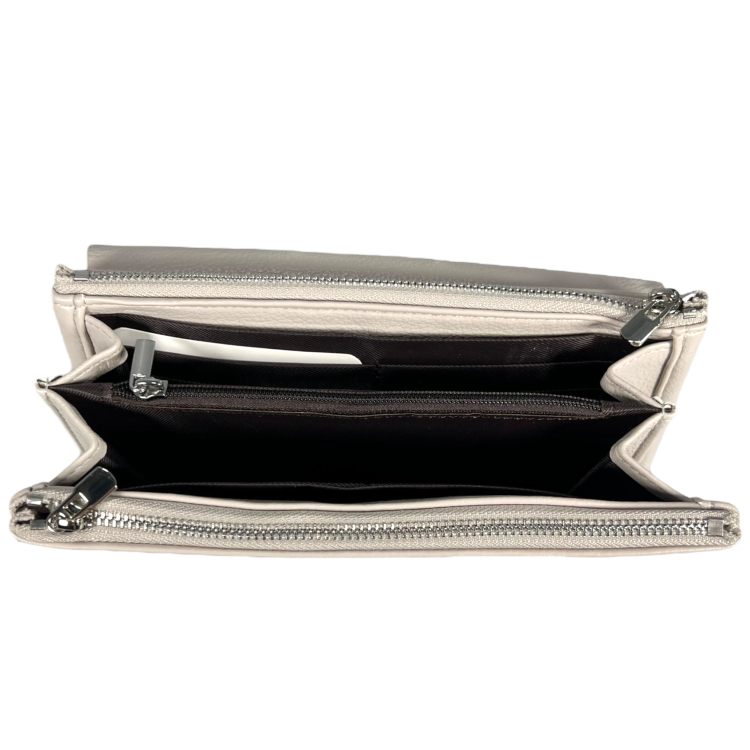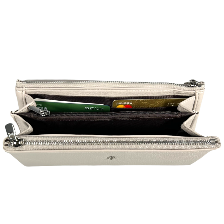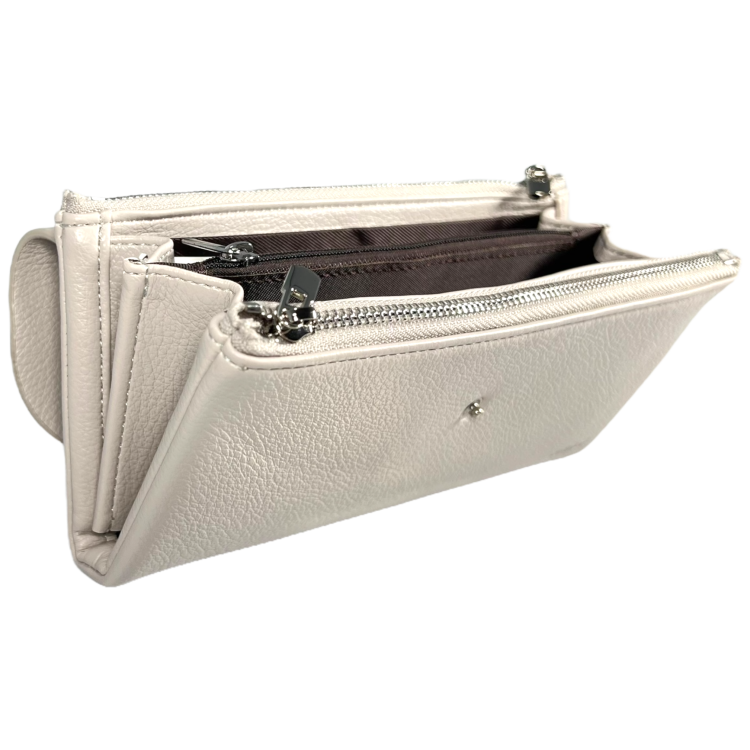 Восемь отделений для карт, четыре отделения для купюр и скрытые карманы позволяют удобно организовать ваши финансы и личные вещи.