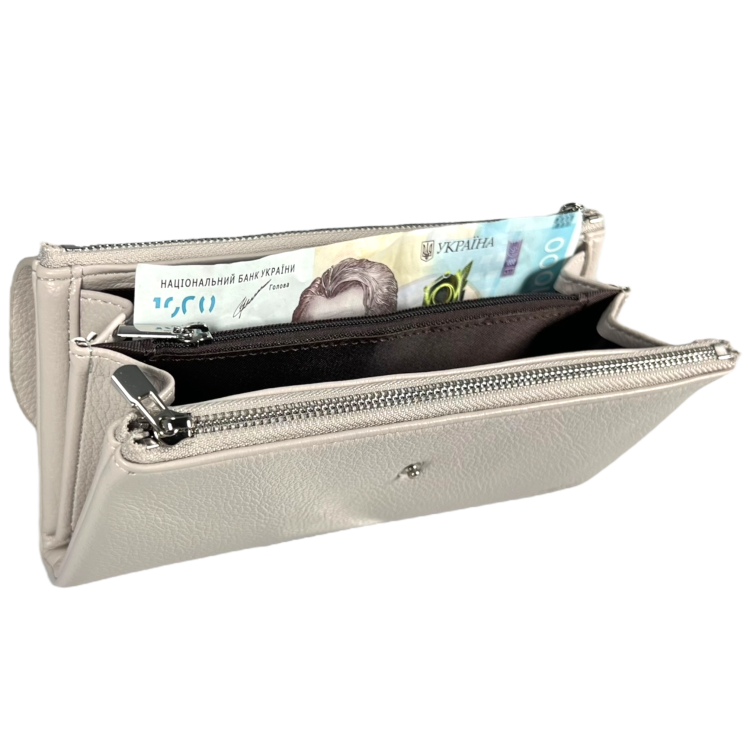 Кошелек из экокожи молочного цвета с кнопочной застежкой