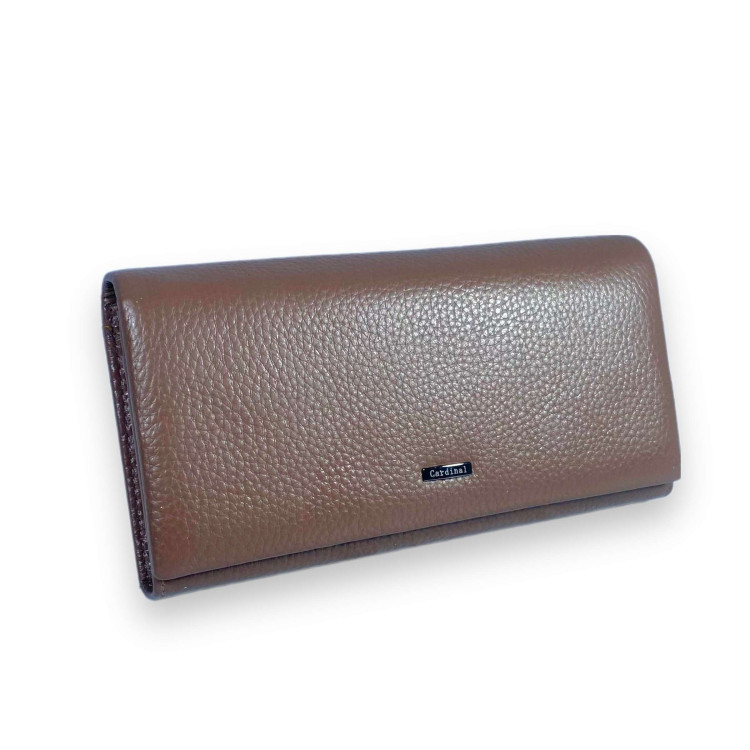 Стильный женский кошелек, кожаный, коричневый, 3 отделения для купюр