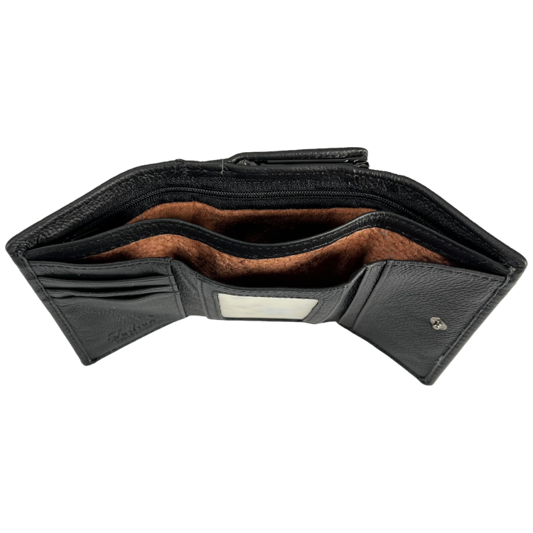 Разнообразие отделений и функциональность: Кошелек оснащен 6 отделениями для карточек и 3 отделениями для купюр, что обеспечивает удобство при организации финансов. Дополнительные скрытые карманы позволяют хранить личные мелочи безопасно и удобно. Застежка на змейке и кнопка обеспечивают надежное закрытие и сохранение содержания.