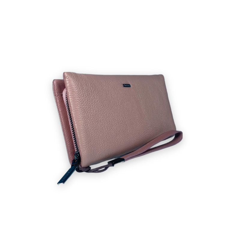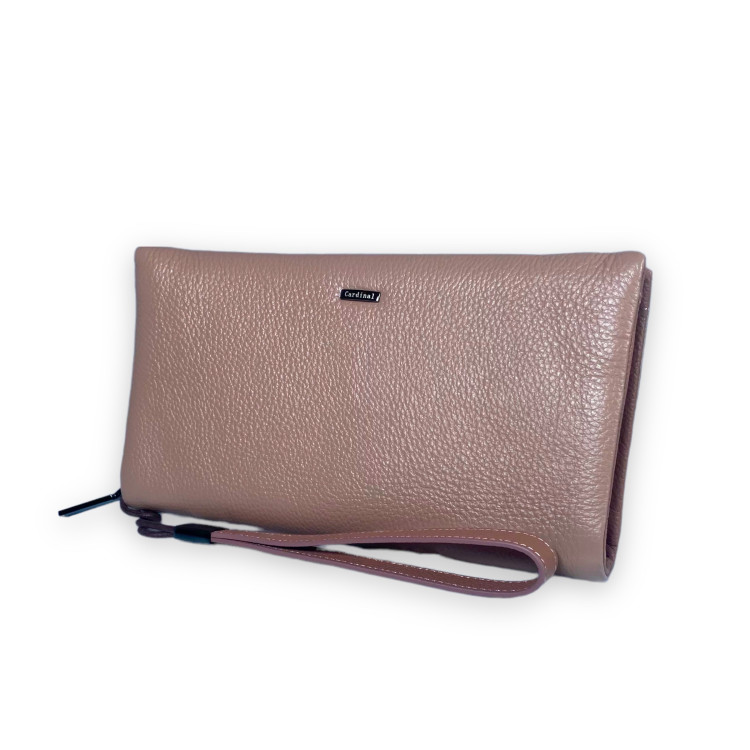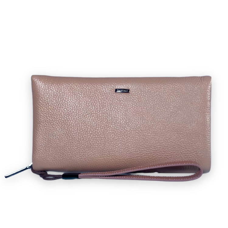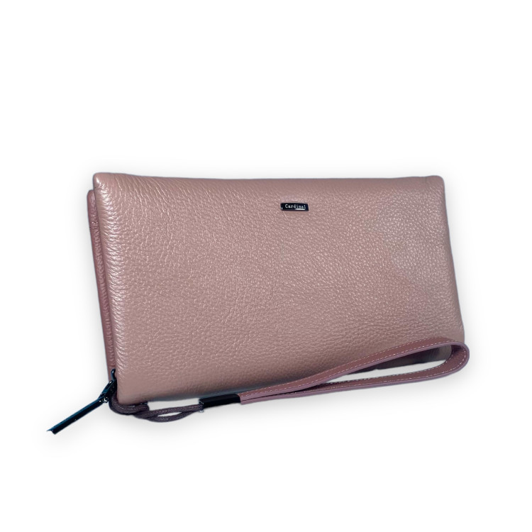 Женский клатч Cardinal натуральная кожа 4 отдела 12 ячеек для карт размер: 21.5*12*3 см пудра