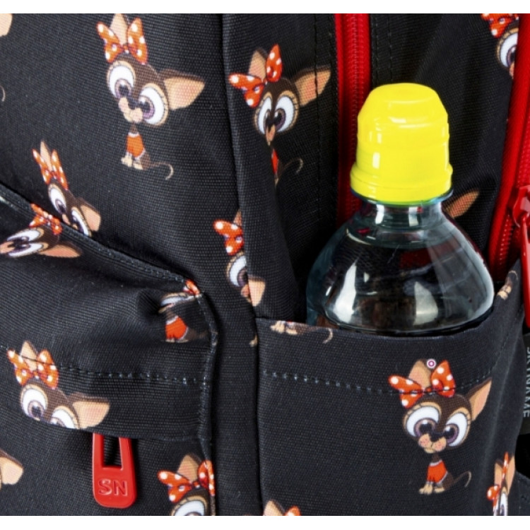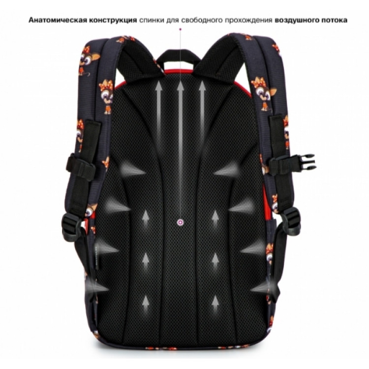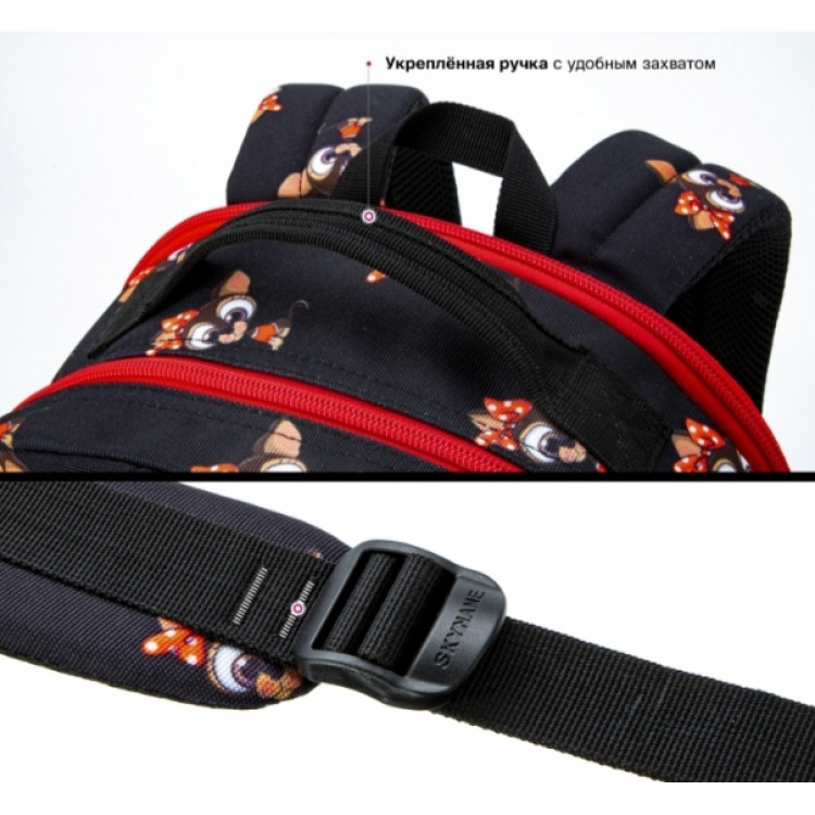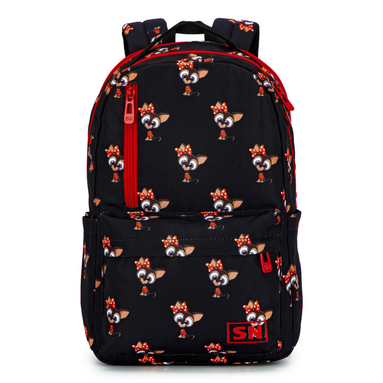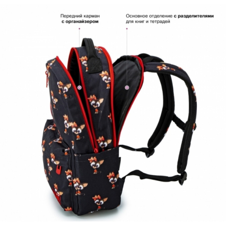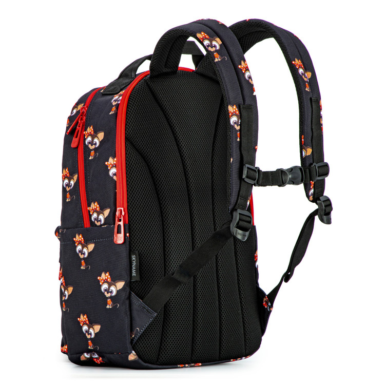 Рюкзак молодежный,городской, женский, 77-18, с оригинальным принтом, два отдела, фронтальные карманы, боковые карманы. SkyName, размеры: 41*26*17см, черный с красным