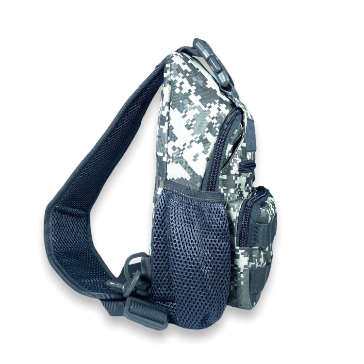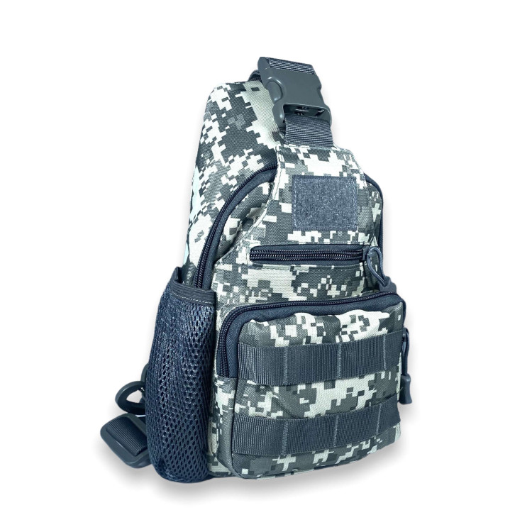 Сумка через плечо, слинг очень универсальна и каждый может использовать ее для своих личных нужд. Сумка очень практична и военнослужащие оценили такой аксессуар с положительной стороны. Изготовлен из прочной ткани с качественной фурнитурой и влагостойкими свойствами. Имеет два отделения, одно на молнии, другое открытое и закрывается с домой застежки-фастекс. Есть внутренний открытый карман и два на лицевой стороне. Предусмотрен боковой сетчатый открытый карман. Важным и удобным дополнением этой сумки установлен на боковой части USB-слот с кабелем.