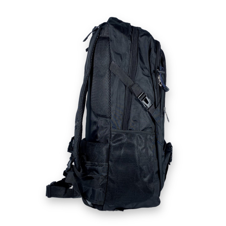 Рюкзак для туристических походов или для удобной транспортировки своих вещей имеет два отделения разного объема. В одном из отделений предусмотрена внутренняя карман открытого типа. На лицевой стороне расположены три кармана разных размеров, два боковых кармана. Поясное крепление и сетчатые вставки на спинке позволяют удобно расположить рюкзак на спине. Мягкие регулируемые лямки не натирают плечи, удобно "ложатся" на плечи владельца. Грудная стяжка обеспечивает надежное крепление. Изготовлен из прочного полиэстера и обладает влагоотталкивающими свойствами.