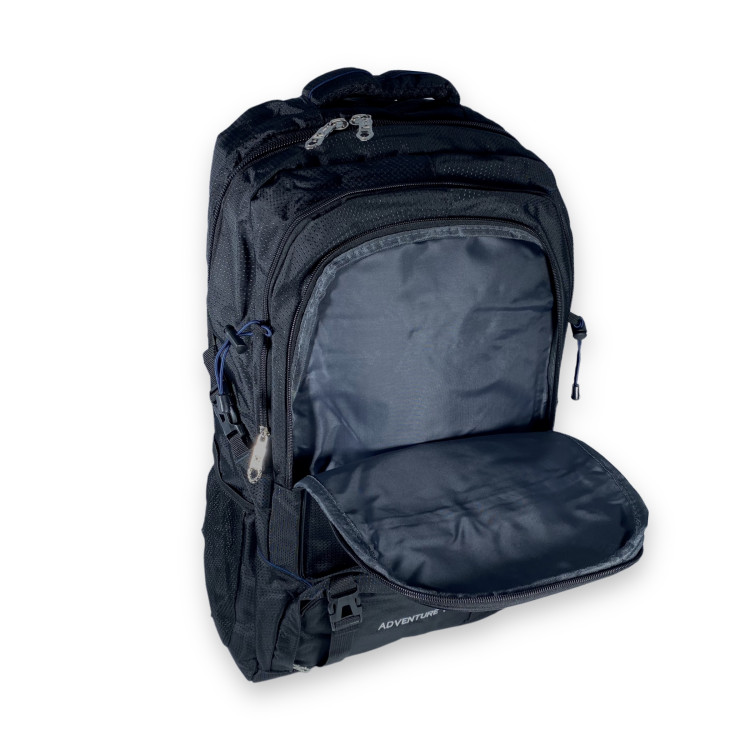 Туристический рюкзак, полиэстер, 50 л, два отделения, три фронтальных кармана, размер: 65*40*20 см, черно-синий