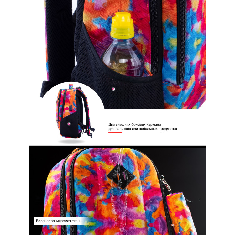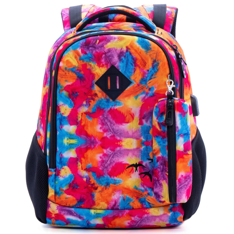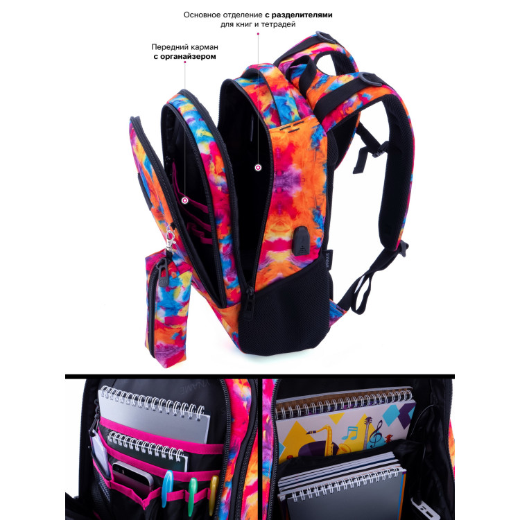 Рюкзак для девочки, подростковый, 57-24, молодежный, USB порт, органайзер, два отдела, боковые карманы, SkyName/(Winner) разм. 30*16*40см разноцветный