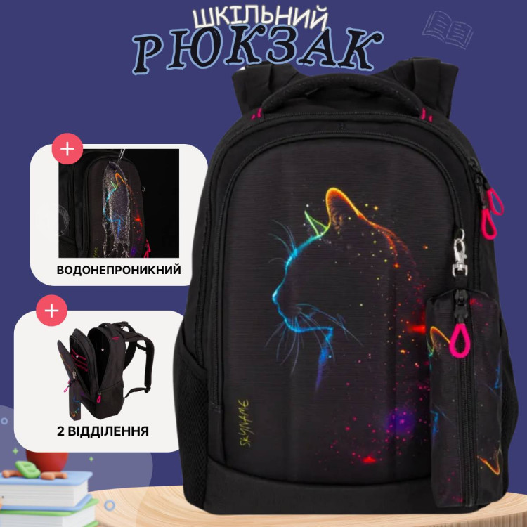 Школьный рюкзак для подростков, 2 отделения, пенал в комплекте, принт Котик