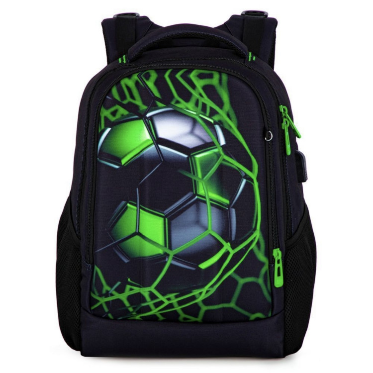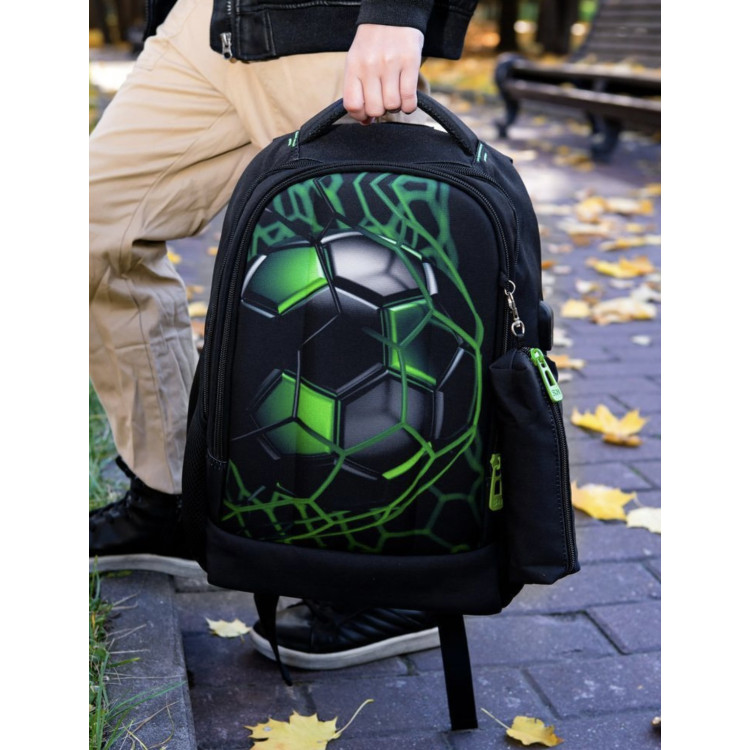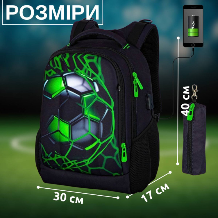 Школьный рюкзак для подростков с USB-слотом, 2 отделения, пенал в комплекте, 17 л, принт Мяч, 17 л