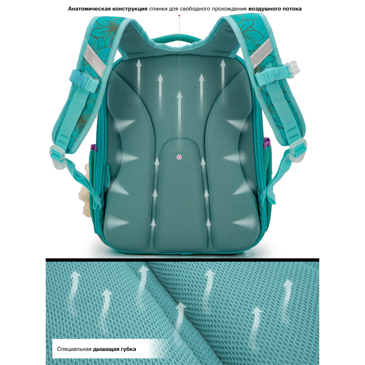 Эргономичная спинка ранца разработана с учетом анатомии ребенка, позвоночник защищен специально сконструированной спинкой, что делает ношение ранца максимально удобным.