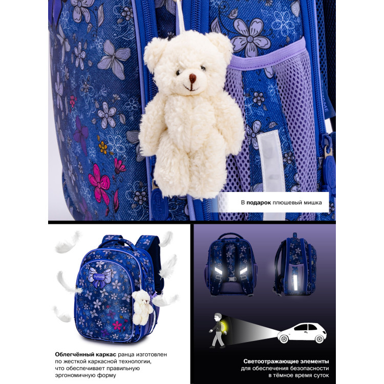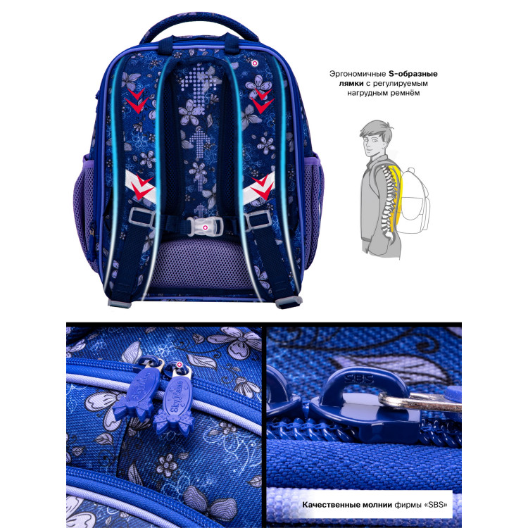 Облегченный каркас ранца изготовлен по жестко-каркасной технологии, что обеспечивает правильную эргономичную форму.