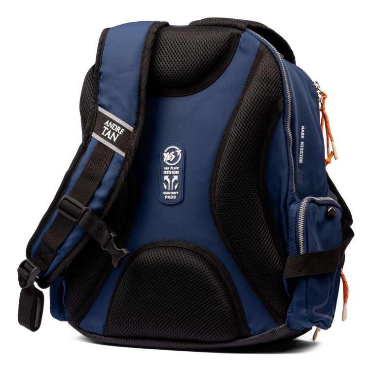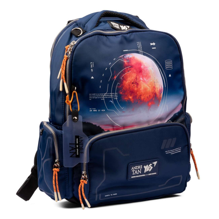 Школьный рюкзак YES by Andre Tan, два основных отделения, один фронтальный карман на замке, два боковых кармана на замке, светоотражающие элементы, нагрудный ремень, декоративная подвеска, размер: 38*29*12 см, Space dark blue (синий).