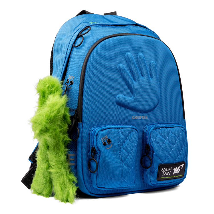 Школьный рюкзак YES by Andre Tan, полукаркасный, два основных отделения, два фронтальных кармана на замке, два открытых боковых кармана, светоотражающие элементы, декоративная подвеска, размер: 40*30*14 см, Hand blue (синий).