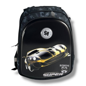 Черный рюкзак с ярким принтом машинки выглядит современно и динамично – именно то, что нужно активному школьнику!