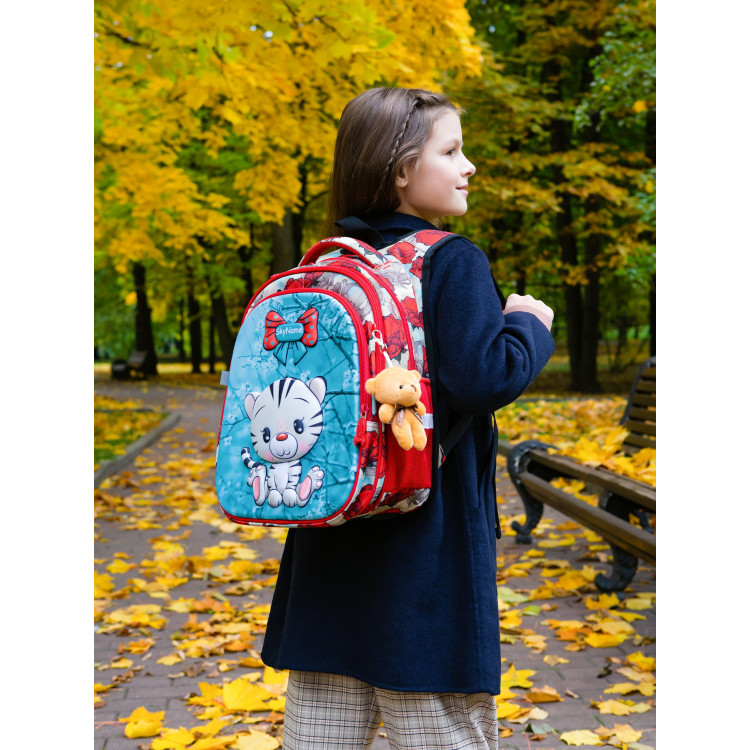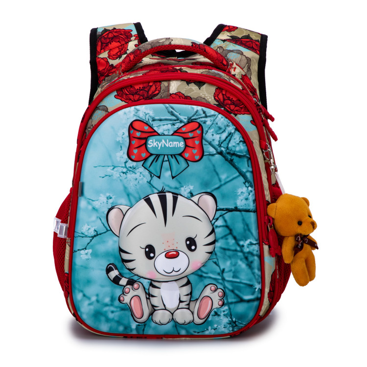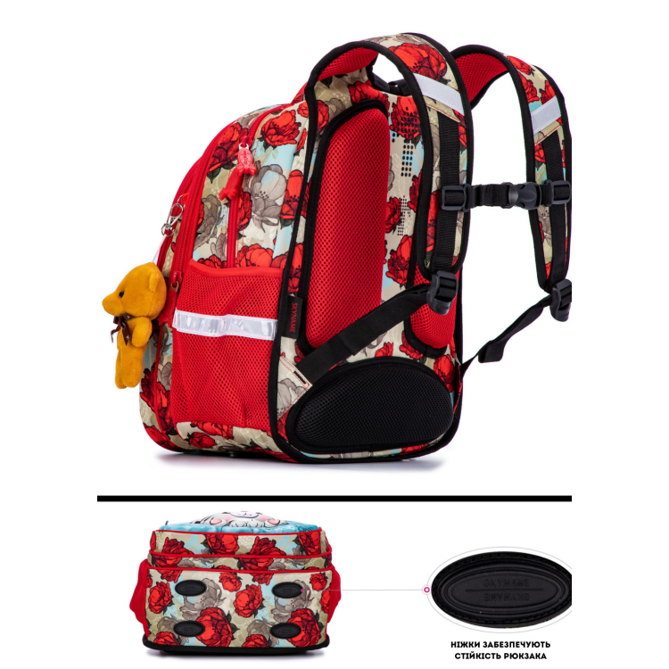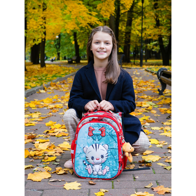 Рюкзак школьный для девочки 1-4 класс, три отдела, ортопедическая спинка, светоотражающие элементы SkyName (Winner) R1-024 размер 37*30*16 см, красный с синим