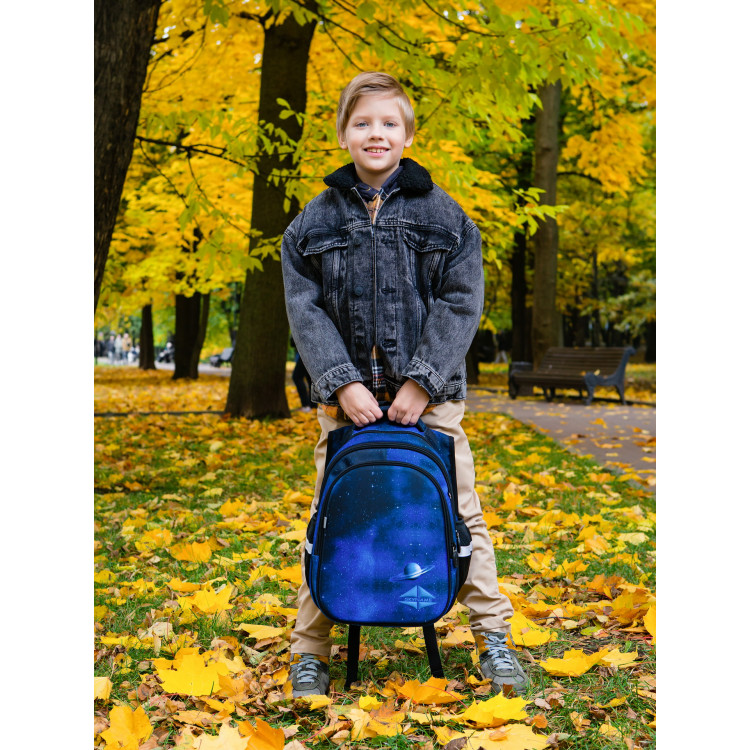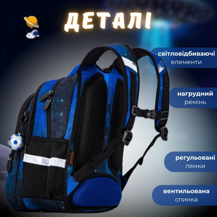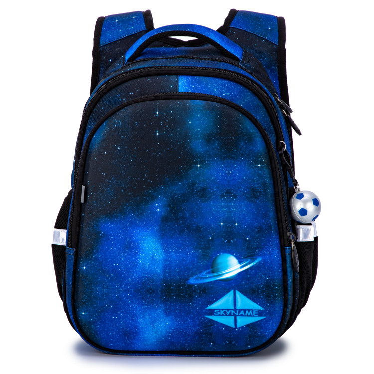 Рюкзак школьный для мальчика 1-4 класс, R1-030 ортопедическая спинка, объемный рисунок, брелок-мяч,SkyName(Winner)размеры: 37*30*16 см, черно-синий