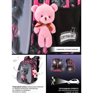 Рюкзак школьный Кот розовый с черным – идеальное решение для девочек 1-4 классов, сочетающее комфорт, стиль и безопасность. Благодаря ортопедической спинке, светоотражающим элементам и удобной организации внутреннего пространства, он станет незаменимым спутником в школьной жизни.