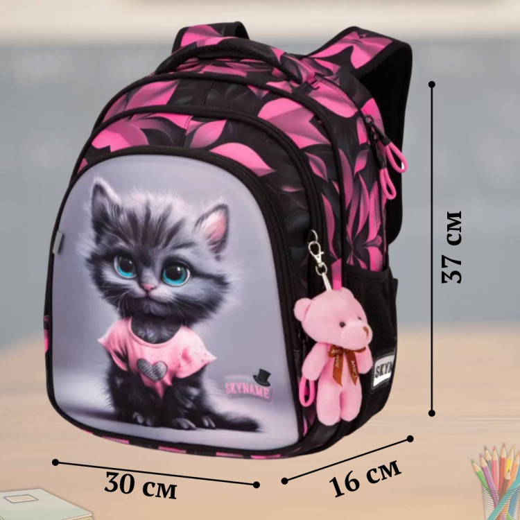 Этот яркий рюкзак с милым котиком станет любимым аксессуаром девочки для школы и прогулок. Оригинальный дизайн в черно-розовых оттенках выглядит стильно и гармонично дополняет образ юной ученицы.