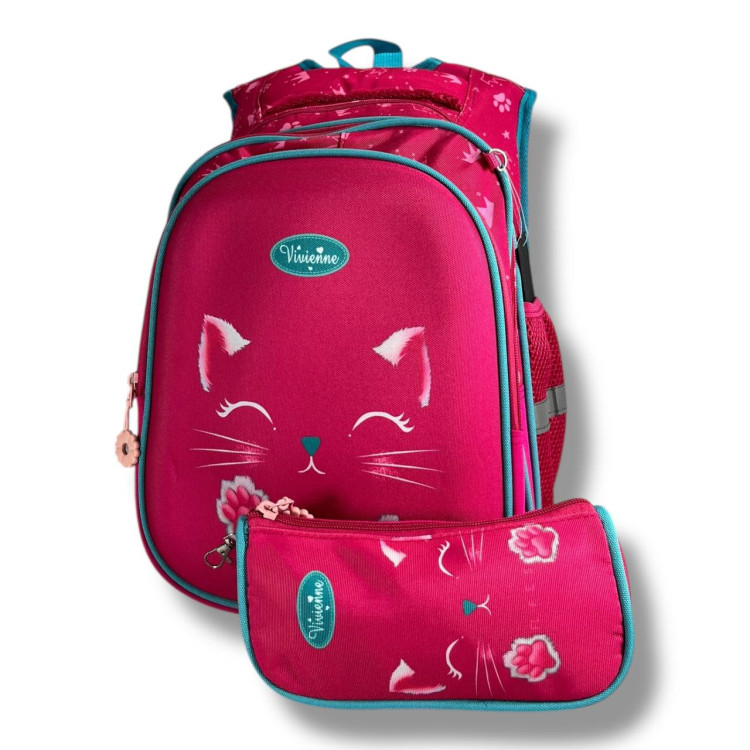 Школьный рюкзак для девочек 6–9 лет с принтом "Котик" + пенал в комплекте