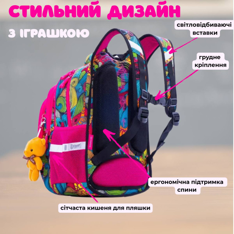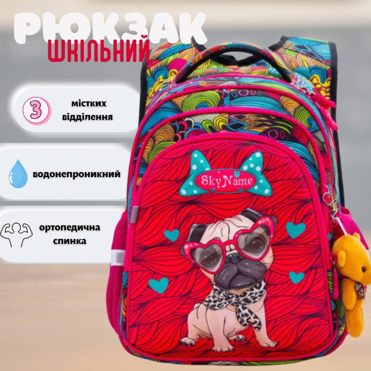 Детский школьный рюкзак R2-174, для девочки со светоотражателями с объёмной 3D картинкой ортопедическая спинка Winner SkyName, брелок "мышка" размер: 30*16*37см красный