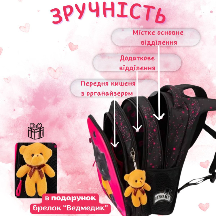 Брелок-медвежонок в комплекте – милый аксессуар, который придаст оригинальному рюкзаку.