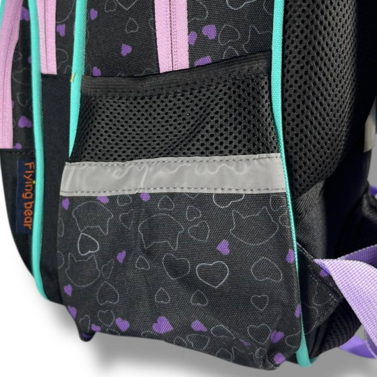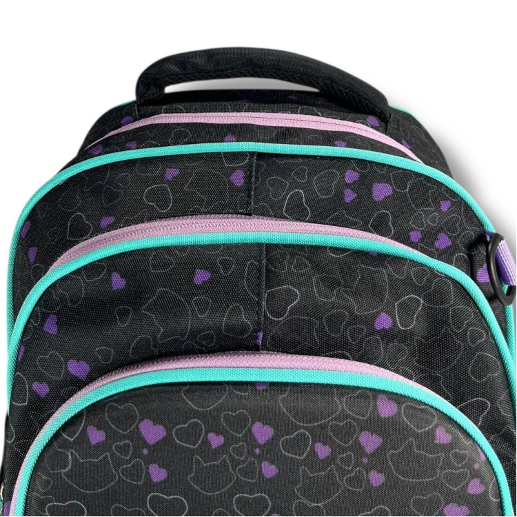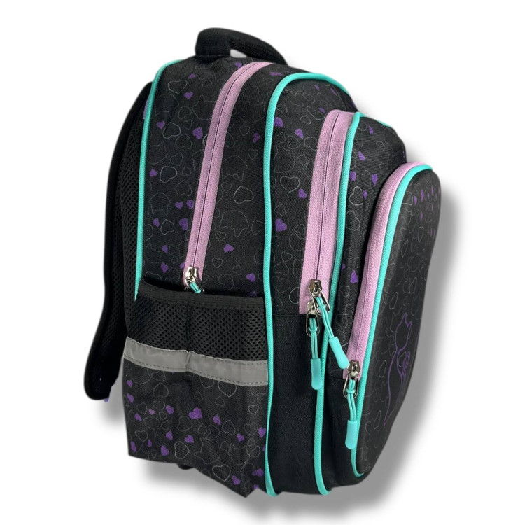 Школьный рюкзак для девочки с принтом "Котик и сердечки" – стиль и комфорт для младшей школы
