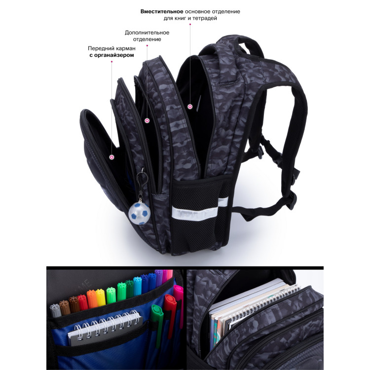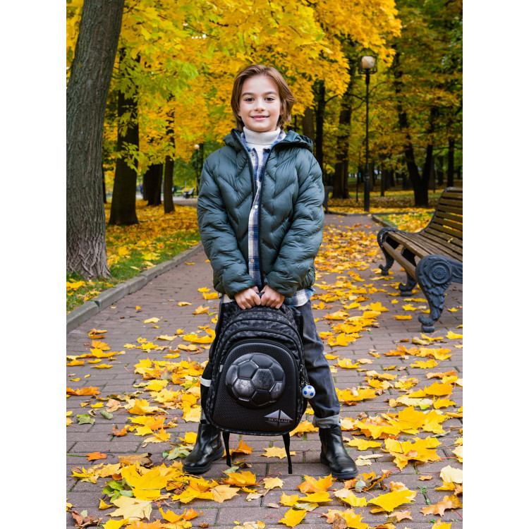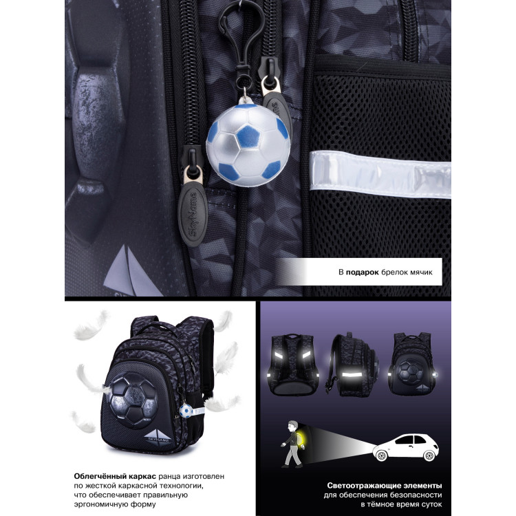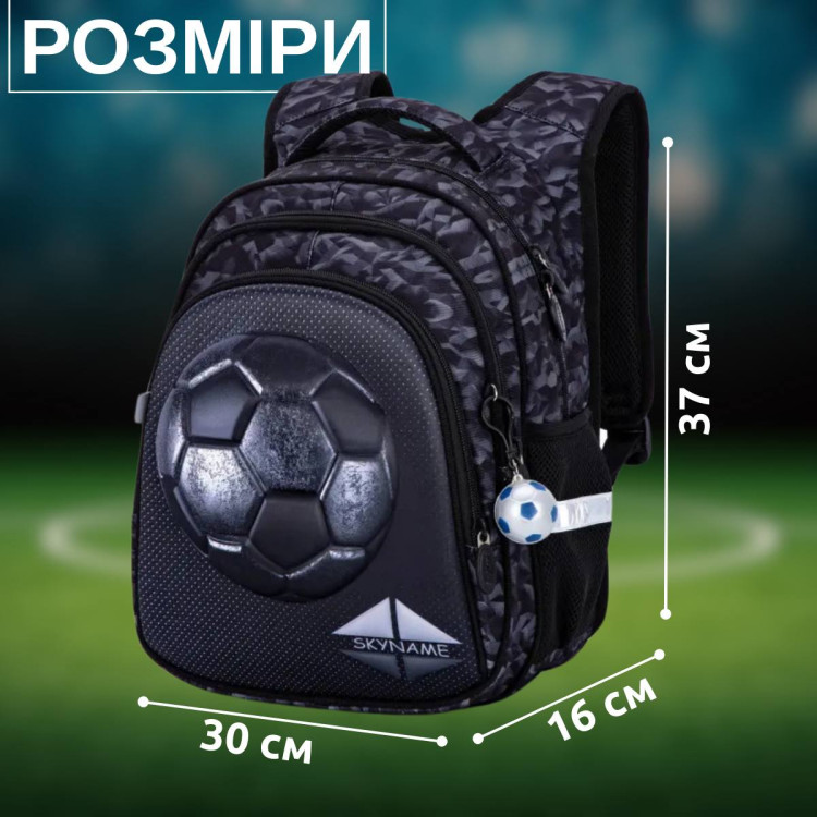 Детский школьный,качественный рюкзак R2-188 для мальчика младших классов, ортопедическая спинка, футбольный мяч SkyName(Winner)размер: 30*18*37см серый
