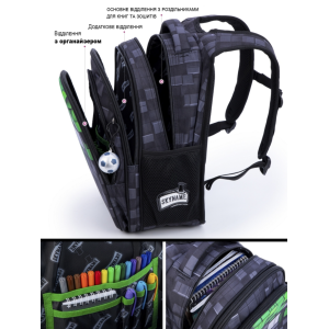 Три вместительных отделения – для учебников, тетрадей и других вещей.